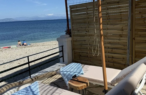 Experience a one-of-a-kind beach holiday at our luxurious sea front apartment, Fronte Mare Suite, nestled on the first floor of a charming building that features only three apartments. This stunning accommodation comfortably hosts up to 4 guests and boasts breathtaking sea views from all rooms, the balcony, and the patio. The apartment includes 2 spacious bedrooms and 2 modern bathrooms, along with an open plan living room that seamlessly connects to a dining area, perfect for family gatherings and relaxation. Step outside to enjoy a large patio facing the sea, which is partly covered to provide shade on hot summer days, while also offering areas for sunbathing. Guests have exclusive access to a private outdoor seating area, complete with complimentary sunbeds and umbrellas. Located on the beach side of the main street in the popular Benitses resort, the apartment is just a short walk away from shops, restaurants, and entertainment. With Corfu Town only 12 km away, access is easy via the Blue bus public transportation, which runs every 30 minutes. Additionally, there is free street parking available just 200m from the apartment building. Recently renovated with a modern touch, our Fronte Mare Suite combines elegance and comfort, making it the ideal choice for a romantic getaway or a luxury family vacation. Book your stay today for an unforgettable beach experience in Corfu island!