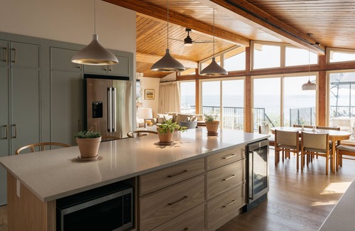 This luxury lake front cottage has undergone a full renovation and will be available June 1. Historic mid-century charm but with modern upgrades and stylish finishes. Three bedrooms plus plus sleeping loft for younger kids. Two bathrooms sleeps 6-8. Lake front with dock and boat lift the perfect spot for u. Very quiet part of sylvan lake. Brand new kitchen appliances and Weber BBQ await you. 7 person hot tub on-site June thru Sept. Fish from the dock or take your boat out for the day. Pair of roadbikes to use during ur stay.Amazing sunsets from the dock and all day stunning views. Dock in June thru Sept. Normally 30 day minimum rental.