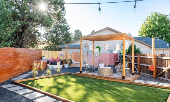 Discover the perfect family-friendly retreat in the heart of Bend, OR, just minutes from top restaurants, breweries, and outdoor attractions. This modern 3-bedroom, 2-bath home offers endless entertainment with a game room featuring a pool table and air hockey, a movie projector for cozy nights, and a dedicated kids’ playroom. Unwind in the private hot tub or soaking pool, then gather around the fire pit under the stars. A fully equipped kitchen, high-speed WiFi, and family-friendly amenities ensure a seamless stay. Whether you're exploring Bend’s scenic trails or relaxing at home, this getaway has everything for a memorable vacation!