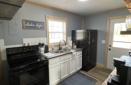 Kick back and relax in this calm, stylish space. This cabin is a centrally located to multiple docks. It’s 10 min to State Dock, 7 min to Halcombs Landing, 10 min to Grider and many more. It has 2 bedroom, 1 bath, kitchen and living room. It has all of the amenities you would need to enjoy your time at the lake and coming back to relax in the peaceful surroundings. Come stay with us!
