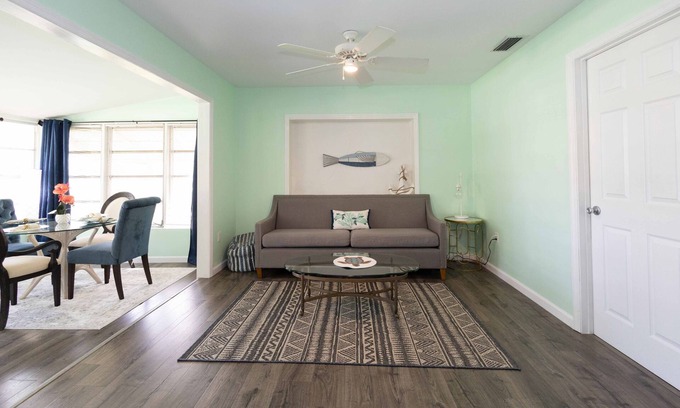 Come stay in the best location in Vero Beach! Over 1,250sf!!! This home features two stylish, clean and comfortable bedrooms, one bathroom, full kitchen and spacious living area. This newly renovated home is located 5 short minutes to the white sand beaches of the treasure coast! Come to Vero Beach and sip a Starbucks by the ocean in your sun dress while your friends are watching on Instagram! Come spend the week or month! I am happy to accommodate your special request! Book now filling up fast… pet friendly if your pet is friendly! Pet cleaning fee applies. Monthly rentals available at a discount! Message for details!