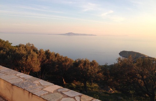 Newly renovated old stone house situated in an olive grove with a spectacular view of the Agean Sea.