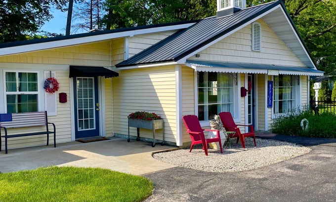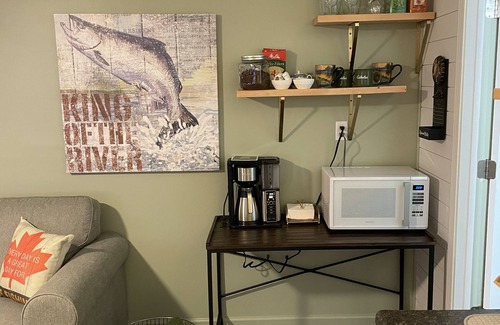 Recently renovated Studio Apartment on the Muskegon River. King Bed, sleeper sofa, laundry in unit, fully stocked kitchen, private patio with grill. Adorably decorated! Available for nightly, weekly or monthly rentals.