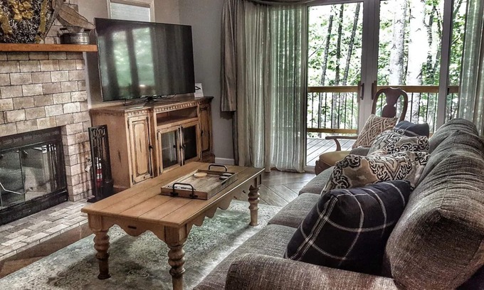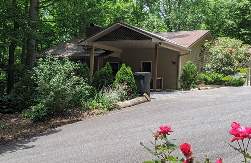 While only 5 minutes from downtown Waynesville, the townhome is nestled on a private wooded hillside. Our property offers all the necessary amenities, including linens, a laundry room, fully equipped kitchen, big porch with outdoor dining set and a gas grill. The comfortable king-sized bed in the master bedroom ensures a good night's rest. The guest room also has a king-sized bed. The open concept of the renovated kitchen allows you to spend more time with the family while cooking. Open the windows for the cool breezes and enjoy the sound of Lickstone Creek!