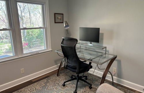 We have just finished renovating this stunning house on a peaceful cul-de-sac in the historic Ardmore district, conveniently located for Wake Forest University, the prestigious medical center, downtown Winston-Salem, and all major sports venues. The house itself has a huge open-plan living room, dining room, and kitchen that are flooded with light. We have personally renovated every room, and added brand new furniture and appliances throughout. For those who need to work, there is a dedicated office. The back yard is enveloped by tall trees and offers the perfect environment to enjoy a morning cup of coffee or relax over an evening glass of wine.