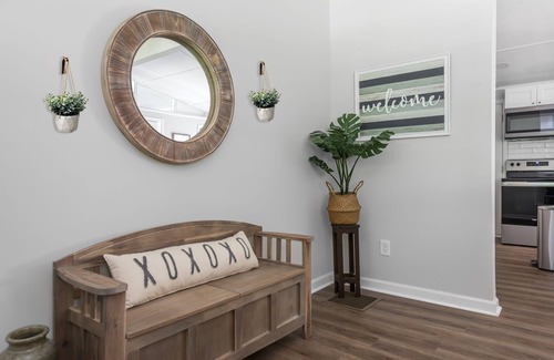 Minutes from downtown Woodstock, our 3 bedroom, 2 bath cottage has been totally updated so everything is brand new. Our open floor plan has a full kitchen, hi speed internet, Alexa echo, convenient keyless entry, smart thermostat, laundry room and charming private patio area which makes for the perfect getaway.