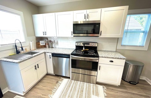 Inside, you’ll find a cozy and inviting space with stylish decor throughout. The main floor has been newly remodeled and features modern furnishings and amenities to make your stay as comfortable as possible. The fully equipped kitchen includes brand-new appliances, making it easy to prepare meals during your stay. For coffee lovers, there’s a convenient coffee bar ready for you to enjoy your morning cup just the way you like it.