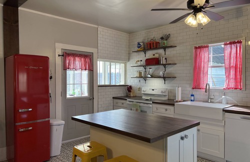 The house may be old, but modern amenities abound in this unique rental. High speed WiFi, two TV's, fully stocked kitchen supplies, antique tub with shower, dedicated office and brand new HVAC.