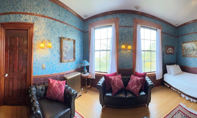 Enjoy your peaceful stay in the once humble, privately accessed, maid's section of this 10,000 square foot mansion, lavishly decorated in Victorian era detailing and high style. Enjoy period antiques, wall coverings and oil paintings seamlessly and uniquely paired with all the modern amenities including free high speed WiFi Internet and FREE PREMIUM TV streaming channels like Disney+ & Prime Video.
