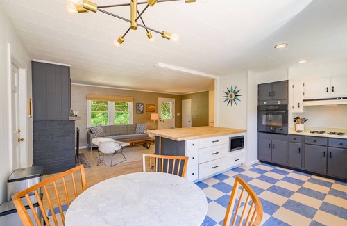 Cove Cottage is a 1950’s ranch home which was renovated in 2022. Currently there are two bedrooms, one with a king size bed and the other with a queen. Mattresses are memory foam and pillow-top Sealys, respectively. There is also an outbuilding bunk house with 2 twin beds. The bunk house is ventilated, insulated and secure but unheated. The bunk house may be furnished with either linens from the house, or the sleeping bags provided by the hosts. The one bath is large with a large shower. The lower level features a queen-size pull-out sofa, and a single chair that folds out into a twin cot. Window air conditioners in each bedroom are provided for your comfort. The fireplace in the living room is a fully functional wood-burning fireplace-a wonderful way to spend a fall evening.
