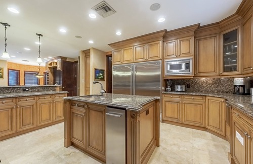 Feel the stress leave as you drive into the one acre estate through a canopy of grand oaks. Seclude yourself in this gated sanctuary while still being in the center of it all. Enjoy the expansive waterfront from almost every room of the villa. Large enough to provide privacy to each member of your group and yet provide plenty of space to eat, drink and be merry together. Enjoy the spacious pool deck between laps in the extra large heated pool or just relax on the covered patio with a drink and watch the boats go by. We also have a wonderful hot tub for your enjoyment.