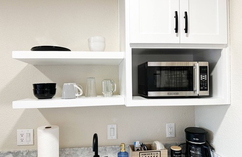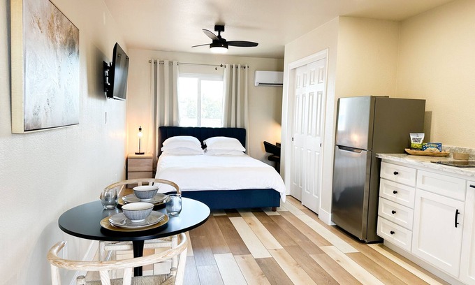 Newly updated studio apartment centrally located 1 mile from highway 99. Very easy freeway access! Perfect place for traveling healthcare workers or traveling professionals. located 2 miles from Kaiser in Modesto and just a few miles to DMC & Memorial Hospital. The studio is newly furnished with a queen bed, desk, 2 chairs & Smart TV. The updated kitchen offers a refrigerator, sink, microwave, coffee maker electric 2 burner cook top, dishes & utensils. Updated bathroom with shower. On site laundry room with coin operated washer & dryer and vending machine. Walking distance to a local grocery market. Guests have access to the entire studio that was booked. Guests may access the parking area & laundry room. Other things to note. Please note that there is a train nearby that you can hear from the apartment. We do not have a dishwasher. This is a simple studio with basic amenities.