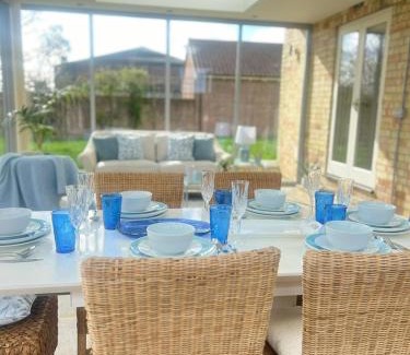 Newmarket Gem 5-Bedroom Home with Game Room and Cozy Spaces offers accommodations in Brinkley, 15 miles from University of Cambridge and 15 miles from Audley End House. The property is around 17 miles from Ickworth House, 18 miles from Hedingham Castle, and 22 miles from The Apex. The vacation home provides free Wifi and free private parking. The air-conditioned vacation home consists of 5 bedrooms, a living room, a fully equipped kitchen with a dishwasher and a coffee machine, and 7 bathrooms with a bath and a hair dryer. Towels and bed linen are provided in the vacation home. The accommodation has a fireplace. Guests can also relax in the garden. Stansted Mountfitchet Station is 23 miles from the vacation home, while Freeport Braintree is 26 miles away. London Stansted Airport is 25 miles from the property.