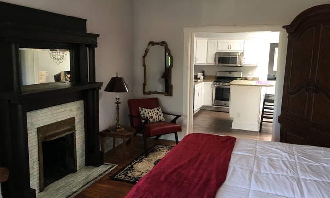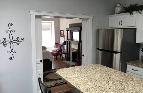 This 900 sqft, second floor suite is a 2 BR (King Serta i-Comfort beds) with a non-working fireplace in each, and a large walk-in shower. Located just a few blocks from the Ohio River, we are located right in the heart of the historic district in a beautiful turn of the century building. If you would also like to experience the big city, a walk or carriage ride to downtown Cincinnati creates a whole new dimension. The end result is a luxurious stay, which combines the best of both worlds. Jeff's career led him to spending many nights in hotels and not always satisfied by what he found. When we decided to build an inn, there were criteria which had to be met: 1. Great beds! 2. Great shower! 3. Variety of pillows! 4. Peace and quiet! 5. Free Wi-Fi! 6. HD TVs with HD signal! 7. Outside area to relax! 8. A full kitchen to make it feel like home! Lastly, a friendly staff who is there to help with recommendations or whatever is needed to make it a special stay!!