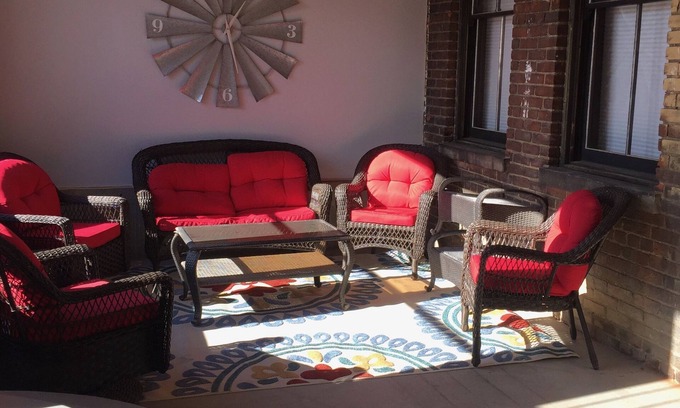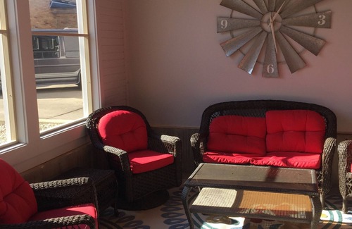 A large, screened porch with comfy furniture and eating area. We are always a phone call away, but we are often at our boutique, Urban Chick (part of the building), and we live only 5 minutes away. As a guest, receive 20% off all purchases at Urban Chick Boutique!