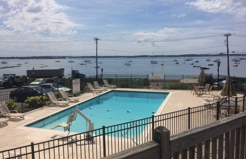 Quiet, quaint getaway close to all the sights in Newport and Jamestown. This waterside resort offers you an easy walk to ferry that will take you to Fort Adams and Newport. Unit is located in historic house that feels like a B & B. Small restaurant is on the first floor and there's an outdoor pool overlooking Newport harbor. Beautiful views and a quiet setting. You are close to area activities, yet away from the crowds.