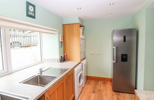 Amenities: Solar panel heating with oil central heating and two woodburning stoves. Electric oven, electric hob, microwave, fridge/freezer, washing machine, tumble dryer, dishwasher. TV, DVD player, WiFi, selection of books and DVDs, iPod dock. Fuel, power and starter kit for woodburning stoves inc. in rent. Bed linen and towels inc. in rent. Highchair, baby bath and travel cot available on request. Off-road parking for 5 cars. Walled garden with lawn, patio, furniture, playground and bike storage. Pet-friendly, sorry, no smoking. Shop 1 mile, pub 9.9 miles. Note: Bring own linen for travel cot. Note: The bed in bedroom 1 is a king-size zip-link as standard. if you require this to be a twin, please contact us to advise. Please note the property accepts a minimum of 2 nights stay
