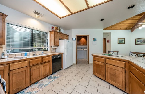 The kitchen offers plenty of counter space to cook fabulous dinners for your friends and family. A large pantry provides extra space to store your food during your visit, so there is no need to leave grocery bags full of food on the counters. Unpack and stay a while! The kitchen offers a bar area, perfect for other family members to sit and socialize with the family's "Chef" while staying entirely out of the way!