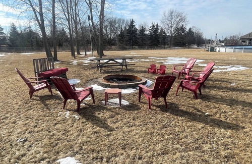 The home has parking for up to 7 vehicles and the garage has RV electric hookup. This is the perfect way to enjoy the NFL Draft in Green Bay. Our home is pet friendly and we have a large one acre fenced in back yard featuring a patio and a large fire pit to enjoy a big bonfire in the evening, Or if you prefer, you can cozy up to the indoor fireplace that turns on with the flip of a switch located in the open concept family room which boasts a 70" big screen TV. Come and enjoy the draft!