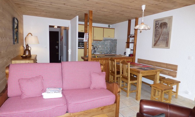 Large and beautiful apartment of 47 m2, fully insulated and recently renovated (2014), character furniture, accommodating up to 6 occupants, on the ground floor south of a small, quiet 1-storey residence located in the resort center and close to all amenities (shops, restaurant, cinema, swimming pool, crèche, skating rink and access to the slopes).