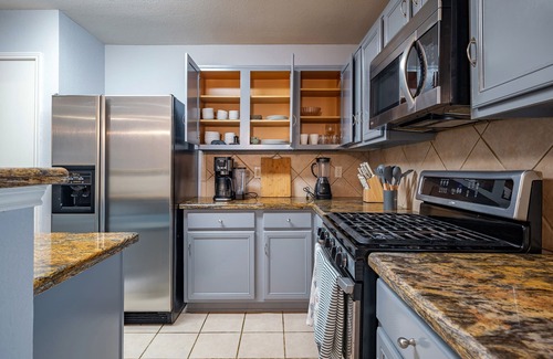 Welcome to our contemporary 3-bedroom, 2-bathroom home in a quiet tree-lined neighborhood. Whether you’re a business traveler, a family on vacation, or a couple seeking a cozy getaway, this cozy retreat offers comfort and convenience. With open concept design, spacious living area connect seamlessly dining and kitchen, creating an inviting atmosphere. Good location: different restaurants are nearby, great school district area, and access to neighborhood pool.