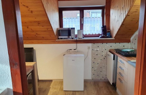 The apartment has 3 bedrooms (2 double beds, each with a flat screen TV, 1 single bed). A bathroom with shower, toilet, sink. The kitchen is fully equipped with fridge, Doppelinduktionsplatte, coffee maker, kettle, toaster, etc. A highlight is the beautiful glazed terrace on which there is a dining table for 4 people u. a couch gives. The entire apartment (except bathroom) is laid out with laminate.