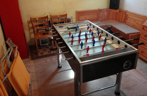 106 m2. More information by the provider: The wooden chalet (105.5 m2 on 2 floors) is located about 2km outside ofthe center in a quiet residential area.In winter there is a free ski bus stop nearby. On the ground floorthere isa cozy living/dining room with a sofa, TV and dining table and anexit to the garden. Free wifi.Open and modernkitchen. Coffeemaker.2 double rooms. Modern shower/toilet. Upstairs (lockable, accessible via internal staircase),there isa large twin bedroom with TV and an open gallery with children's play area and a separate toilet. In the basement of the chaletthere is a hobby room with table football and a ski room, as well as agarage. Two additional outdoor parking spaces in front of the house. Patio and garden with outside fireplace. Pets are not allowed. NON-SMOKING HOUSE.