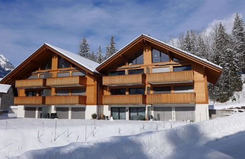 Modern, comfortable apartment block, 3 storeys, built in 2018. On the outskirts, 1.2 km from the centre, in a sunny position on a slope, 20 m from the edge of the forest, south facing position. In the house: lift, storage room for bicycles, storage room for skis, central heating system, washing machine, tumble dryer (for shared use, extra). Communal covered parking. Shop 1.2 km, grocery 900 m, bus stop "Kehr" 200 m, railway station 1.5 km, outdoor swimming pool 1.4 km. Cable car 4 km, gondola lift 1.2 km, skisport facilities 1.2 km, cross country ski track 50 m. Nearby attractions: Oeschinensee, Blausee. Well-known ski regions can easily be reached: Adelboden - Lenk, Nordic Arena Kandersteg. Hiking paths: Sunnbüel - Gemmi, Lötschental. Please note: ski bus (free of charge). Main road close by. Additional accommodations can be booked. Property ref. CH3718.420.1-.4 is situated on the same property.