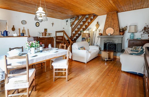Immerse yourself in the rustic charm of this idyllic vacation apartment, nestled in a landscape that invites you to explore and relax. The traditional furniture and loving details will whisk you away to a world far removed from everyday life at home. Wake up in the morning calm and secure under the warm wooden ceiling of your cozy bedroom. You can also retreat here after a day full of discoveries and enjoy the rural tranquillity. The kitchen in your vacation apartment invites you to explore the culinary delights of the region for yourself. Buy fresh ingredients at a local market. Wind down at the end of the day with a board game or a round of cards and make yourself comfortable on the comfy sofas in the living room in front of the inviting fireplace. Or immerse yourself in a good book and forget the hustle and bustle of everyday life. Enjoy breakfast in the open air on the stone-paved terrace and end the evening here with a glass of wine.