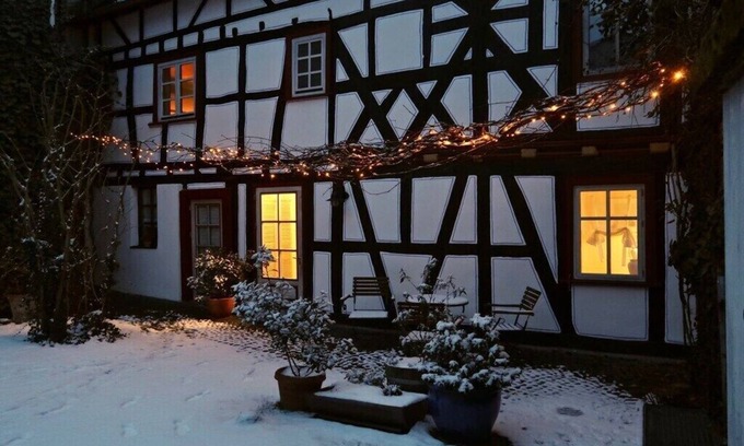 The half -timbered courtyard is located on the edge of a small district of Weilmünster, very calm and close to the forest. The property was lovingly expanded and renovated with natural building materials. So the magical atmosphere of the historical courtyard has been preserved. The facility of the facility is the cobblestone paved, with trees and shrubs green inner courtyard. Enjoy the charm and security of this special place. From the FeWo "Rosenwinkel" you get directly into the courtyard - for a breakfast in the morning sun; To play, browse, sunbathing; For dinner in a cozy round. More information and pictures: www.fachwerk-hof.de