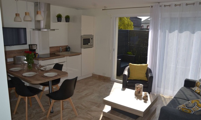 Residence totally independent of 45 m ² with terrace and private entrance (digicode) that we took the time to renovate with care to accomodate you. Located in the city center near the train station and the E Leclerc foundation, you can take full advantage of the shops: bakery, leclerc foundation, restaurants ... The independent housing has been completely redesigned for the well being of visitors.