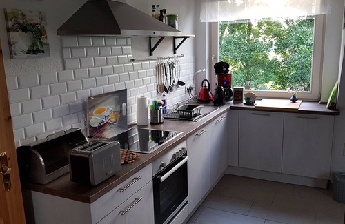 The apartment is on the 1st Upstairs in my house. It is a good 80 m² in size, modern, bright and ideal for up to 4 people (plus a small child). An additional bed can be provided on request at an additional cost. You can park on the property in front of the house. There is very good WiFi reception in the entire apartment. The large property can be used with pleasure.