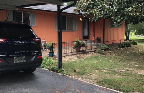 Over 1400 sq ft, large great room with couch, recliner & TV; kitchen with utensils, coffeemaker, air fryer oven, microwave; utility room with washer & dryer; two bedrooms (1 queen bed & 1 full bed). TRIPLE+WIDE PAVED Driveway & DOUBLE carport with outdoor outlets. Located 1 mile from HWY 79 just 1 block off East Antioch Road.