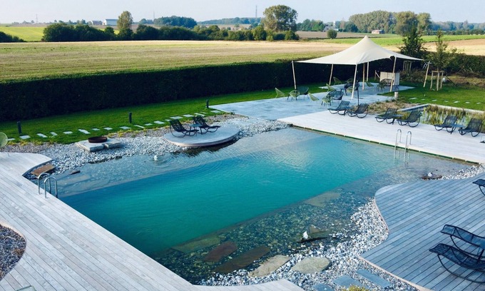 In the heart of the Condroz, the Domaine sur les Sarts is an 18th century castle-farm, listed as a Monumental Heritage of Belgium, converted into several luxury lodges and suites. The ideal place to come and discover the region while enjoying a high level of comfort. A real corner of paradise to offer visitors an unforgettable experience in the heart of nature. You will immediately be seduced by the authentic character of the building, which retains its old-world charm and has beautiful living rooms where it is good to get together as a couple, with family or friends. The one hectare garden allows you to enjoy a biological swimming pond (unheated) with several terraces and a common barbecue.