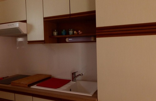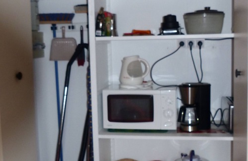 -home kitchenette with (sofa bed, tv, fridge, 2 gas burners, microwave oven)
