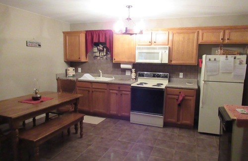 The Bunk House is a nice two bedroom one bath apartment that sits inside very modern upscale stable. One bedroom has four twin size beds. The other bedroom has a queen bed. The only thing rustic about it is the decor. There is another full bath with washer and dryer in the stables just outside the door. Guests are welcome to use the picnic shelter on the river for family gatherings and cookouts, to hike several miles of wooded trails, and to fish in the stocked pond. Riding lessons are available for an additional fee ($55/hour for a private lesson, $40/rider/hour for semi-private lesson, pay after you ride by cash or personal check, or Venmo - no credit card.