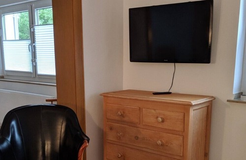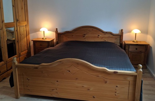 We offer a beautiful, freshly renovated and age-appropriate ground floor apartment with its own entrance and free parking spaces in front of the house. The apartment has high quality equipment. A beautiful large built-in kitchen in country house style with all electrical appliances such as a fridge, oven, microwave, stove and dishwasher, a new beautiful bathroom with a walk-in shower, a cozy living room with a fireplace and a high-quality bedroom with heavy wooden furniture and a high-quality, cozy double bed with new ones mattresses. All windows have electric blinds. Furthermore, we are happy to rent our super car for short distances for shopping or a spontaneous trip to the city if required. It manages a good 30 km with a performance of max. 45km / h. Including helmet and insurance. 15 / € per day. Pre-programmed fun. Dogs are very welcome upon prior arrangement and a daily flat rate.