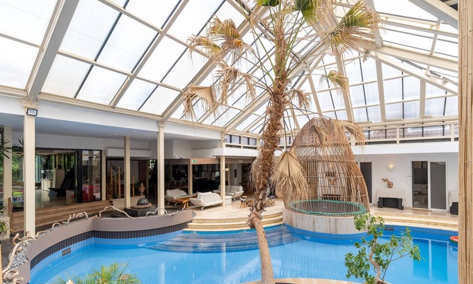 Looking for an exceptional place to relax and have fun? This luxurious complex offers everything you need: a subtropical indoor swimming pool, a perfectly landscaped garden, a private lake with a waterfall, an indoor and outdoor hot tub, a hammam and an indoor and outdoor sauna. Come and spend a dream holiday with your family, group of friends or colleagues, there is room for 30 people. The property is a 20-minute drive from Antwerp Airport, you can request a free airport shuttle at Paradiso Park. We recommend calling ahead to confirm details. There are many other tourist attractions that are worth visiting. The bedrooms all have air conditioning, a bathroom with a walk-in shower, a separate toilet and a view of the lake. billiards and a sunny terrace with BBQ. It is possible to record a video clip, but only on request and at an additional cost. The interiors of the home are nicely done and decorated. About Belvilla: With Belvilla, an unforgettable holiday is guaranteed. We offer a wide range of unique holiday homes that will make your summer holiday, weekend getaway or skiing holiday extra special. Our range includes more than 40,000 holiday homes in 20 European countries. Whether you are looking for an authentic country house with pool in France, a charming house in Tuscany or a cosy chalet in the Alps - with us you will find the perfect accommodation for your family, as a couple or large group. Our holiday homes are located in beautiful places, be it on the coast, high in the mountains or in the middle of the city. Each house is unique and reflects the regional characteristics. At Belvilla you enjoy absolute freedom and privacy. You can have breakfast in your pyjamas or talk undisturbed in the evening without having to worry about curfew. In your own holiday home you can prepare delicious meals with local ingredients or take a relaxing break at any time. You stay among locals and experience the authentic atmosphere of the region first hand. Our homeowners or managers are discreetly available on site and will be happy to give you valuable insider tips about the area. At Belvilla, we are constantly on the lookout for new homes and destinations that meet the wishes of our guests. Book your holiday today and we will ensure an unforgettable stay in one of our unique holiday homes.