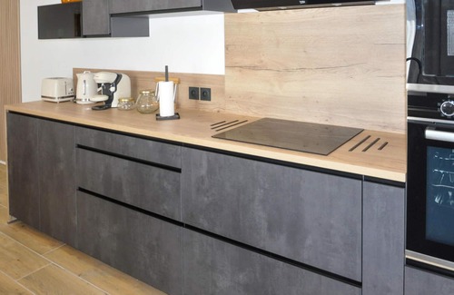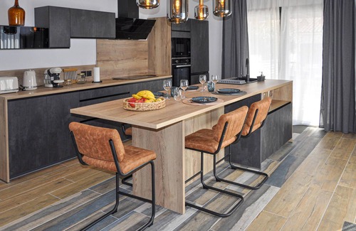 This tasteful and modern holiday home welcomes you in a quiet location and will delight you and your family. High-quality furniture and beautiful design in all rooms create a dreamlike living atmosphere that will make it easy for you to relax. In addition to the inviting interior, you will find the perfect place to barbecue on the sun-protected terrace after swimming and sunbathing in the pool.