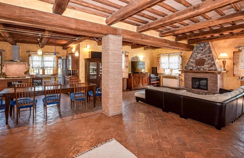 Welcome to your spacious stone villa in a quiet location. The house offers you well-equipped rooms with all comforts. Your family will spend nice vacations here and feel very comfortable. The large living room will be your natural family meeting place, because here you can cook, eat, play together and relax in front of the fireplace.
