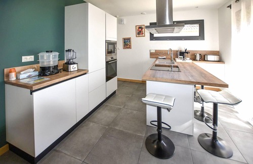 Feel at home here together with your extended family or a family of friends and spend a relaxing time in the bright and cozy rooms. On two floors you can spread out and discover the amenities of the accommodation. The furnishings have been designed with quality and comfort in mind, offering you great hours in the company of others in the large kitchen or the cozy living room.