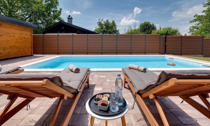 Enjoy your holiday in this dreamlike wooden house with swimming pool.