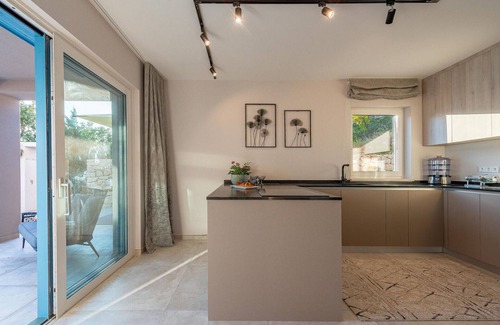 Relax on the sun terrace or use the great outdoor kitchen with gas stove, brick barbecue and wine cooler for wonderful summer evenings. Enjoy the sea view from the infinity pool and end the day on the unique enclosed roof terrace with sauna and jacuzzi.