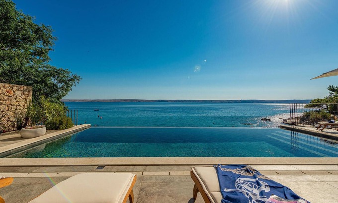 At the foot of the Velebit mountains, in a unique location, you will find this vacation home, which will meet the wishes of even the most demanding guests. It is located directly on the sea and beach and is created for enjoyment and relaxation, both indoors and outdoors.