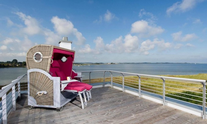 The highlight of this holiday home is the roof terrace with all-round water views and a luxurious beach chair. With all-day sunshine, you can enjoy a slide show and harbour cinema here, with phenomenal views as far as the Baltic Sea guaranteed.