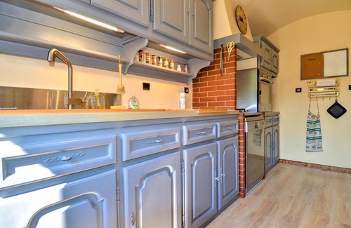 Here you will spend your vacation in an appealing historic stone house that offers everything you need for a successful vacation. The inviting rooms in friendly colors charm with homely furnishings and original elements such as unplastered brickwork and wooden ceiling beams. Make yourself comfortable on the sofas and enjoy cozy evenings in your temporary home.