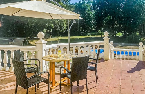 The vacation home has 9 suites. On the first floor there is a ballroom with a 'Swedish room' for drinking tea together, playing cards or watching TV. From the hall there is access to a large terrace with a magnificent view of the park-like natural landscape. From here you can listen to the fantastic birdlife and enjoy a glass of wine at sunset. In the basement there is a vaulted dining room, a fully equipped kitchen and a small bar for celebrating with friends in the evening. Here you will also find the billiard room, a table tennis table and a TV room with a separate staircase to the 'Swedish room'. Sauna, showers and WC's are also located there.