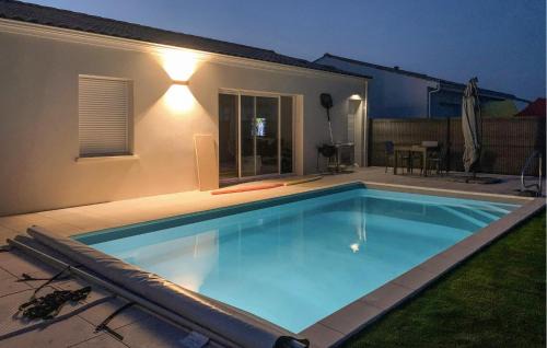 Nice Home In Semussac is located in Sémussac, just 22 miles from Saintes Train Station and 6.8 miles from Royan Train Station. This property offers a private pool and free private parking. Outdoor seating is also available at the vacation home. The air-conditioned vacation home consists of 3 bedrooms, a living room, a fully equipped kitchen with a dishwasher and a coffee machine, and 1 bathroom with a shower and a hair dryer. A TV is offered. For added privacy, the accommodation features a private entrance. Notre Dame Church is 7.7 miles from Nice Home In Semussac, while Congress Center is 7.9 miles from the property. La Rochelle - Île de Ré Airport is 52 miles away.