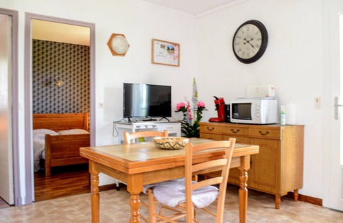 Enjoy a break in your holiday home surrounded by oak and chestnut woods. Look forward to peace, nature and the proximity to places worth seeing in the Lot department. Make yourself comfortable in the simple but practical rooms and organise your days according to your own rhythm. Use the small kitchen with the most important utensils to prepare your meals. Dine together at the dining table or relax on the sofa while enjoying the view outside.