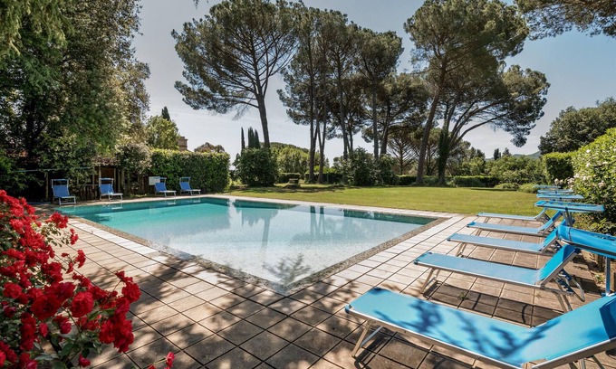 Outside Sutri welcomes you this imposing villa with swimming pool.